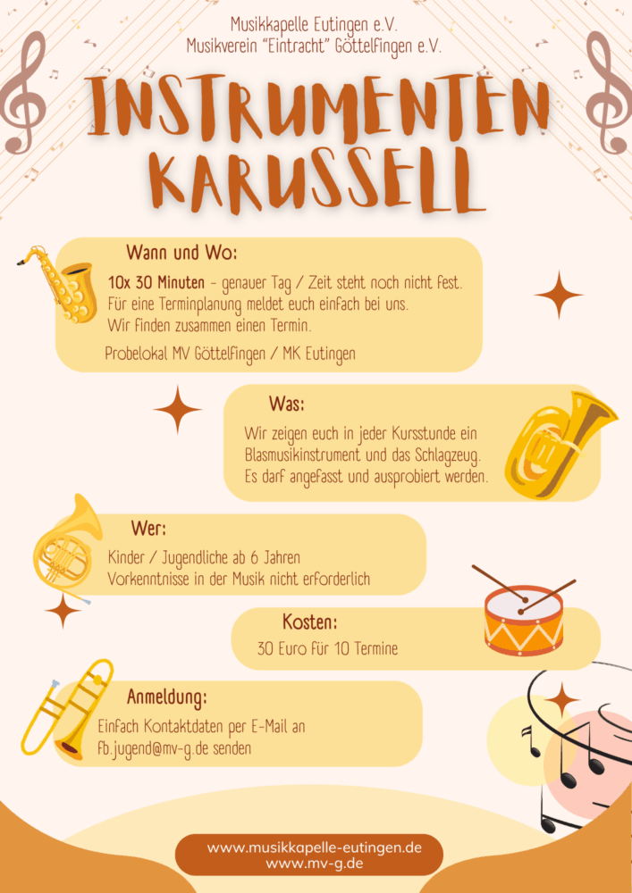Am Freitag, den 04. Juli 2025, laden die Jugendleiter der Musikvereine Eutingen, Göttelfingen und Baisingen herzlich zur Instrumentenvorstellung ein. Los…